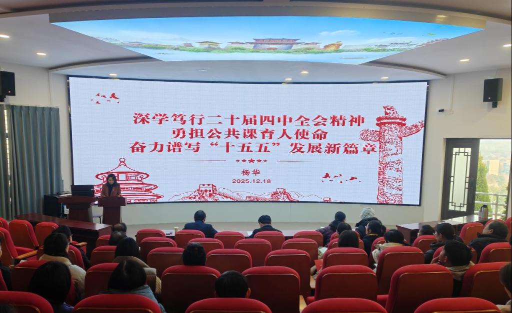12月18日,学校纪委书记杨华在明志楼二楼报告厅为公共课部全体教职工作了一场题为《深学笃行二十届四中全会精神 勇担公共课育人使命 奋力谱写“十五五”发展新篇章》的专题辅导报告,旨在推动全会精神在公共课教学、科研、党建等工作中落地见效。
