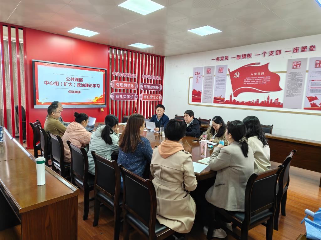 2025年10月13日上午,公共课部理论学习中心组在博学楼三楼会议室举行2025年第10次理论学习会。公共课部中心组成员、研究室主任参加学习,由党总支书记陈建波主持。