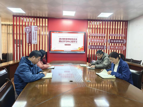 2026年1月23日下午,通识教育学院理论学习中心组在博学楼三楼会议室举行2026年1月中心组理论学习会。学院中心组成员参加学习,党总支书记王建宏主持。