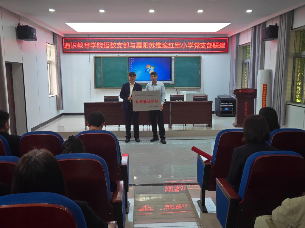活动伊始,双方举行隆重的授牌仪式,标志着通识教育学院语数支部、英体支部与襄阳苏维埃红军小学党支部联建共建合作正式启动。此次授牌为校地双方搭建了资源共享、优势互补、协同育人的坚实平台,为后续常态化开展党建共建、教学交流、红色传承等活动奠定了坚实基础。授牌仪式后,两支部党员教师与襄阳苏维埃红军小学教师代表围绕“红色基因融入课堂教学”“心理健康教育协同推进”“师德师风共建共育”等重点话题开展座谈交流,大家畅所欲言、分享经验、凝聚共识,进一步明确了联建共建的方向路径,凝聚了携手育人的强大合力。